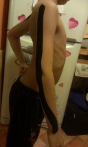 A képen lázcsillapítást szólgáló meridián tape technika látható